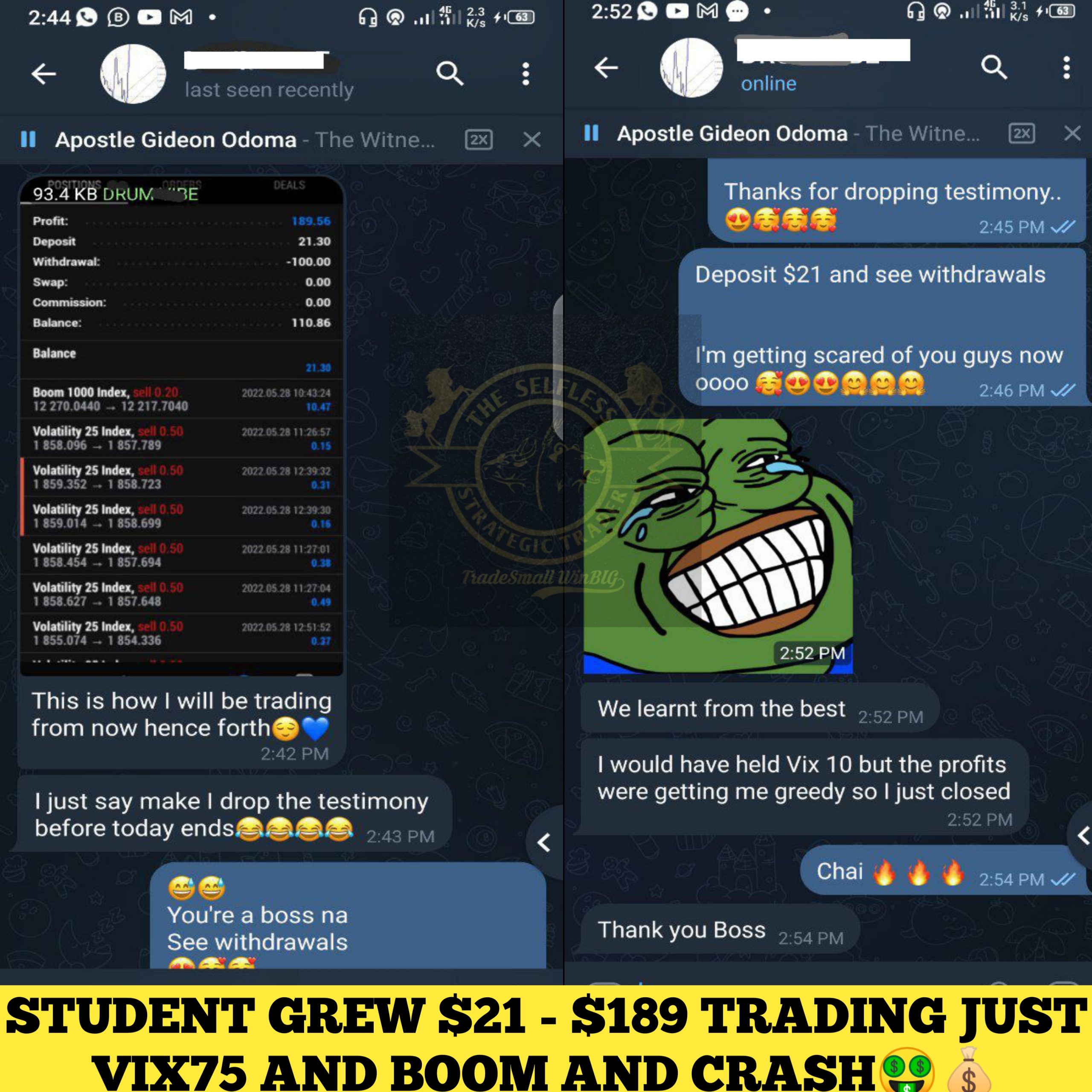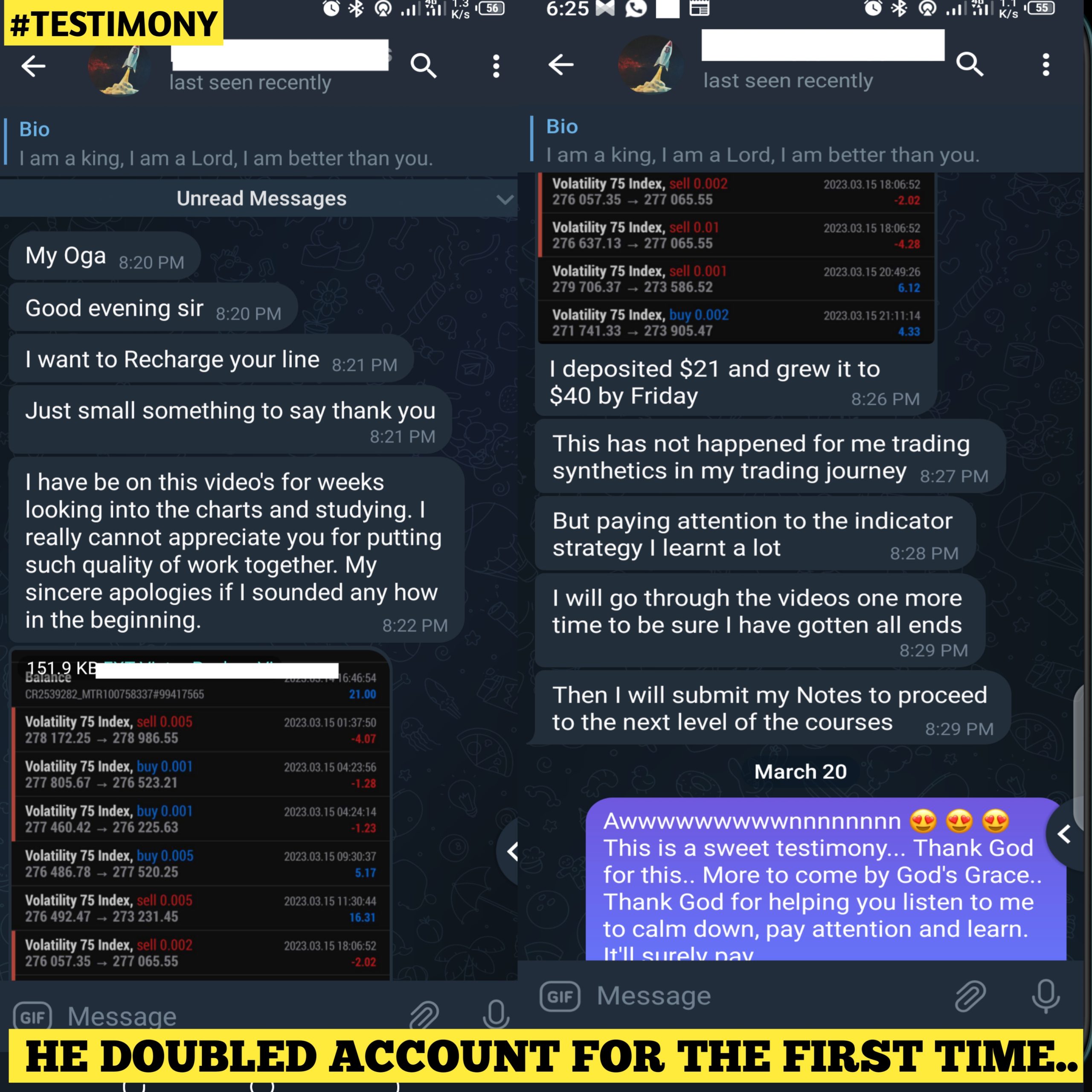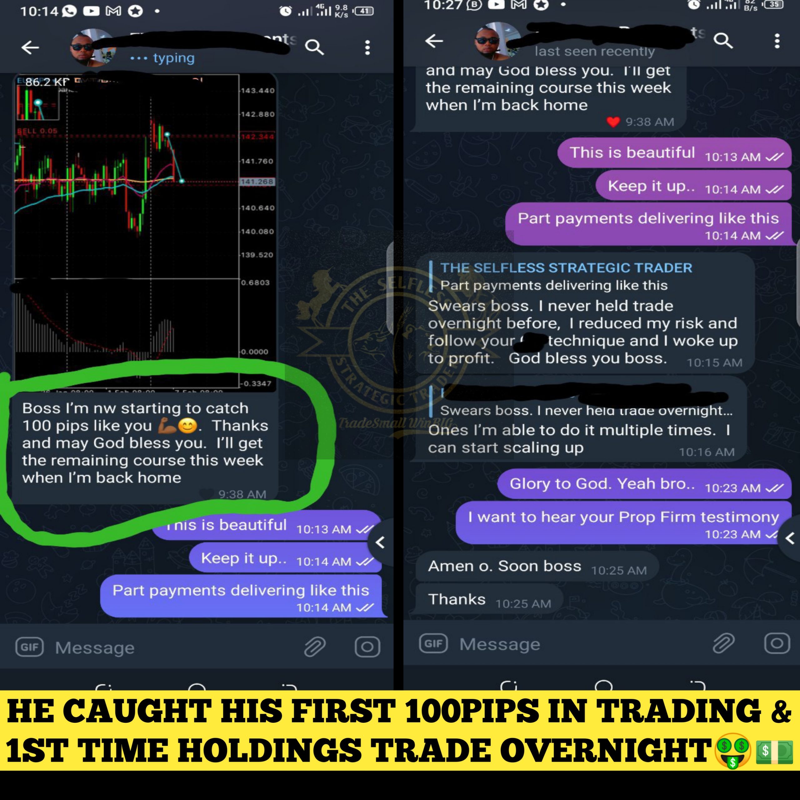 Fast forward to over a decade, I was able to develop trading strategy that has generated unimaginable profits for me in the trading journey. My trading pattern has been tested and it's proven to be trusted. My students replicate the same pattern and they get results. You will see the evidence in the testimonials.